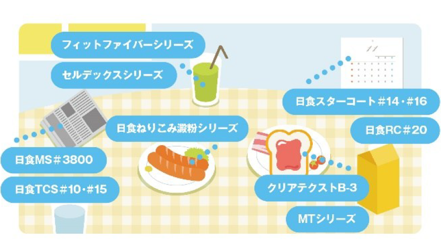 食品開発展2025 東京ビックサイト 西1ホール 1-0632025年10月15日(水)〜17日(金)10:00〜17:00 展示内容Contents 詳しく見る 味質改良 中味向上に最適なオリゴ糖 日食マイルドオリゴ 主成分:α-1,6結合分岐オリゴ糖(重合度4-6の糖質を高含有) 味質:風味を損なわず自然でマイルドな味質(甘味度約25%) 詳しく見る 味質改良 苦みのあるオリゴ糖 日食ゲントース#45 糖質には珍しいキレの良い苦味を有するゲンチオオリゴ糖を含むグルコオリゴ糖です。苦味付与効果のほか、隠し味として用いることで果汁感増強効果や渋味低減効果などを有します。 詳しく見る 食感改良 陳列、レンジ加熱後もサクサクに! 日食テクスターチ#01 揚げ物衣の食感改良を目的としたタピオカ加工でん粉です。 常温陳列時やレンジ加熱後も良好な食感を維持します。 衣の食感をサクサクとしたひきのない食感にします。 詳しく見る ここにもある!日本食品化工 日本食品化工の製品は日々の食卓で活躍しています。 お問い合わせ